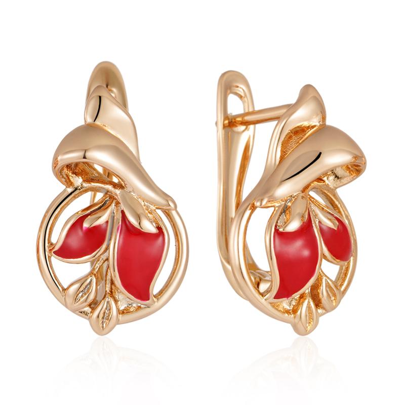 Fashion Rose Gold Color Red Enamel Drop Earrings For Women Natural Zircon Flower Wedding Party Vintage Jewelry Girl