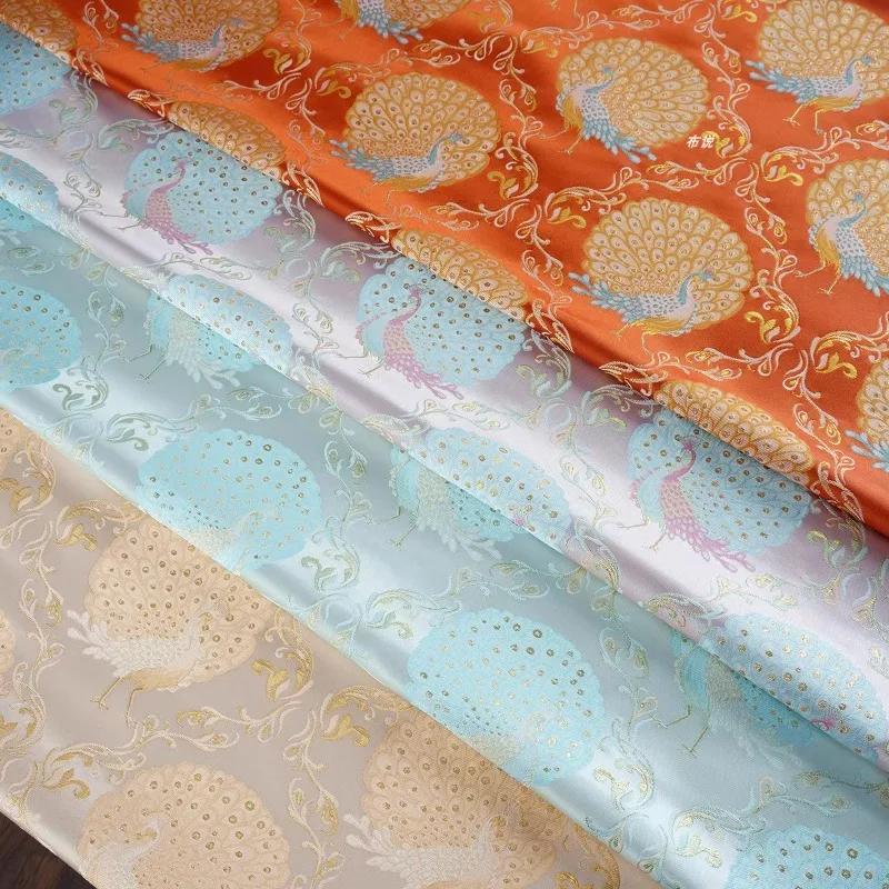 100x150cm Brocade Jacquard Fabric Peacock Print Weaving Fabric Gold Gilded Sparkling for DIY Dress Skirt Jacket Pant Design