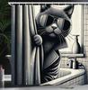 Vintage Effect Funny Whimsical Humor Cat Shower Curtain Fabric Bathroom Decoration Shower Curtain with Hook, 180x180cm