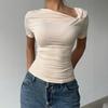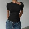 Women's Fashionable Casual Versatile Off-shoulder Pullover Top, Sexy Summer Slim Waist New T-shirt Short Sleeve Top