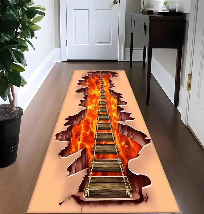 3D Visual Illusion Runner Rug Magma Suspension Bridge Pattern Game Floor Mat Entrance Bedside Sofa Carpet Home Decoration