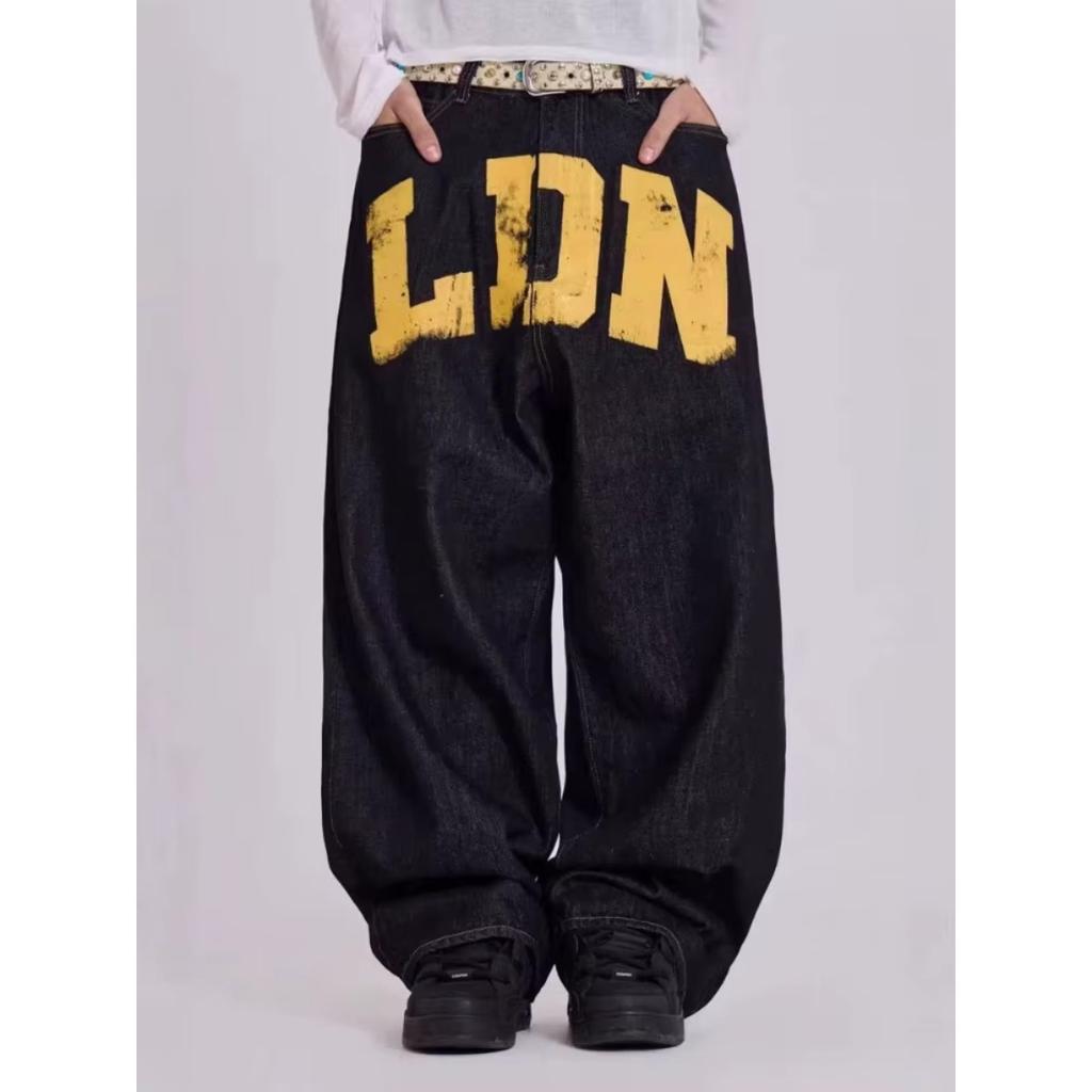 RogueWave American Vintage Letter Print Jeans Women's Black Gothic Y2k Loose Denim Pants Fashion Hip Hop Wide Leg Casual Streetwear