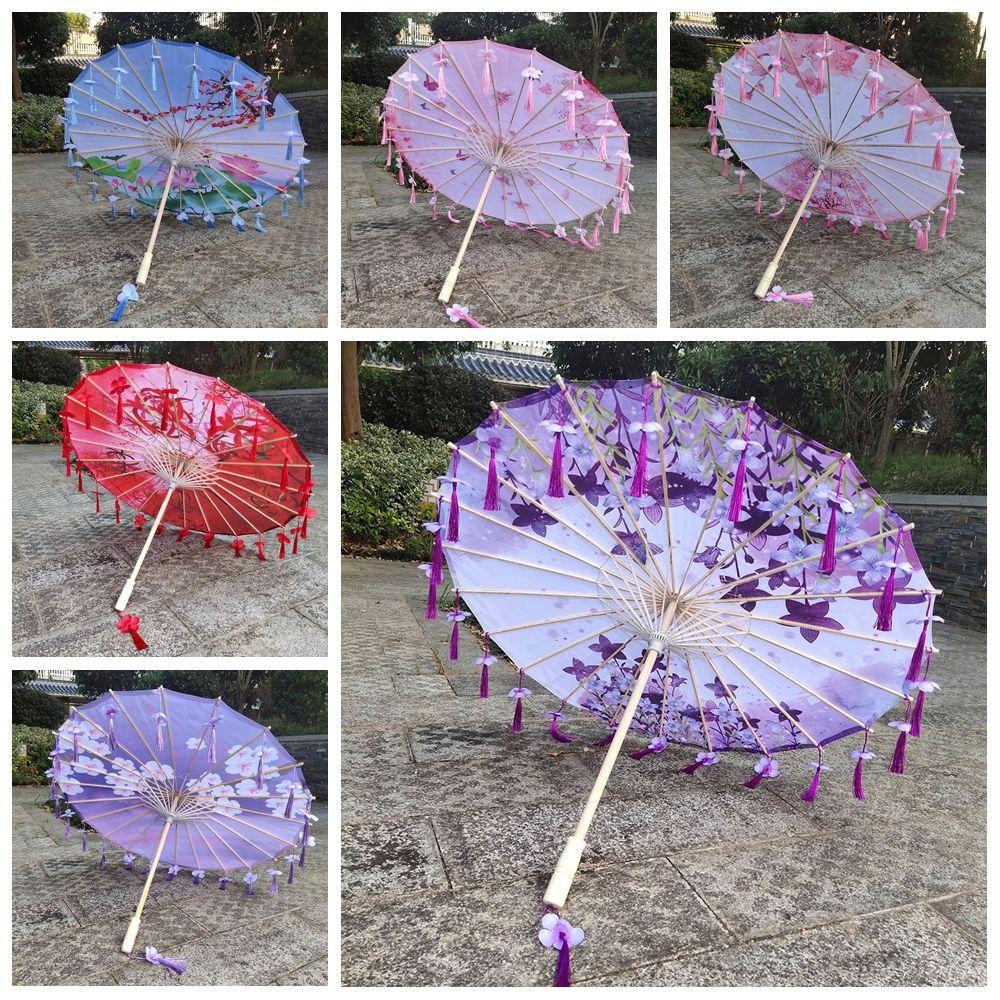 Chinese Japanese Art Silk Parasol Umbrella Large 82cm Embroidery Tassel Decorative Umbrella Classic Ribbon Umbrella