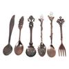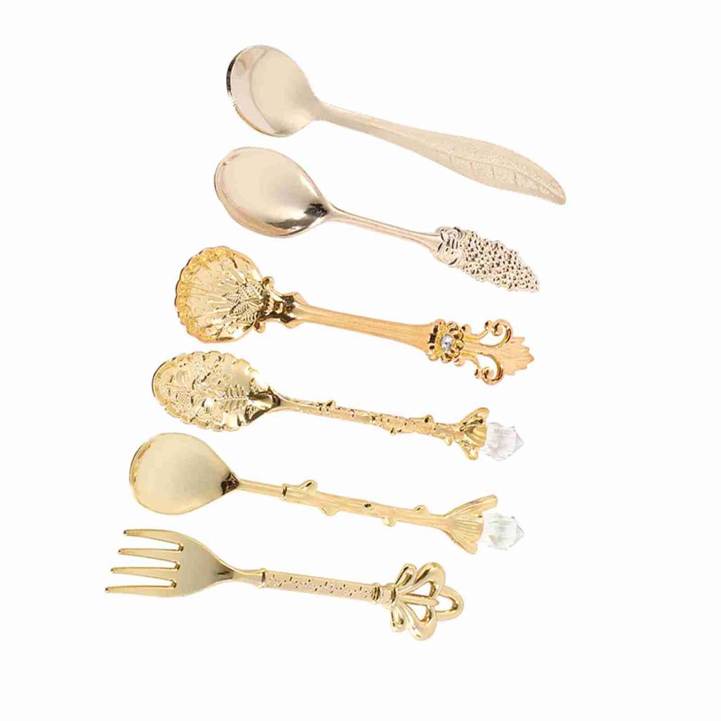 6Pcs/Set Retro Royal Metal Coffee Spoons and Fork Kitchen Fruit Accessories Golden