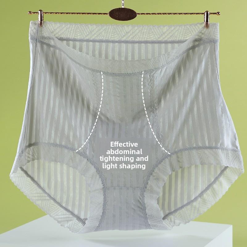 Plus Size Female Spring and Summer Striped Ice Silk Pure Cotton Crotch Antibacterial High Waist Belly Lift Hip Shape Briefs