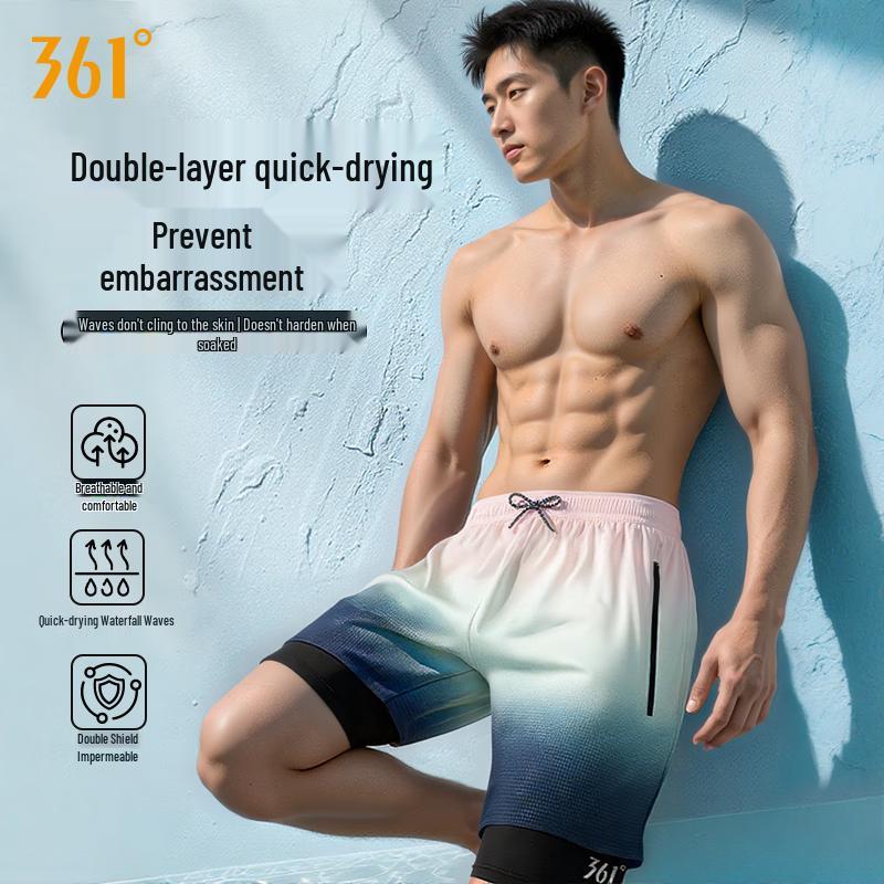 361° Men's Fake Two-Piece Double-Layer Swimming Trunks