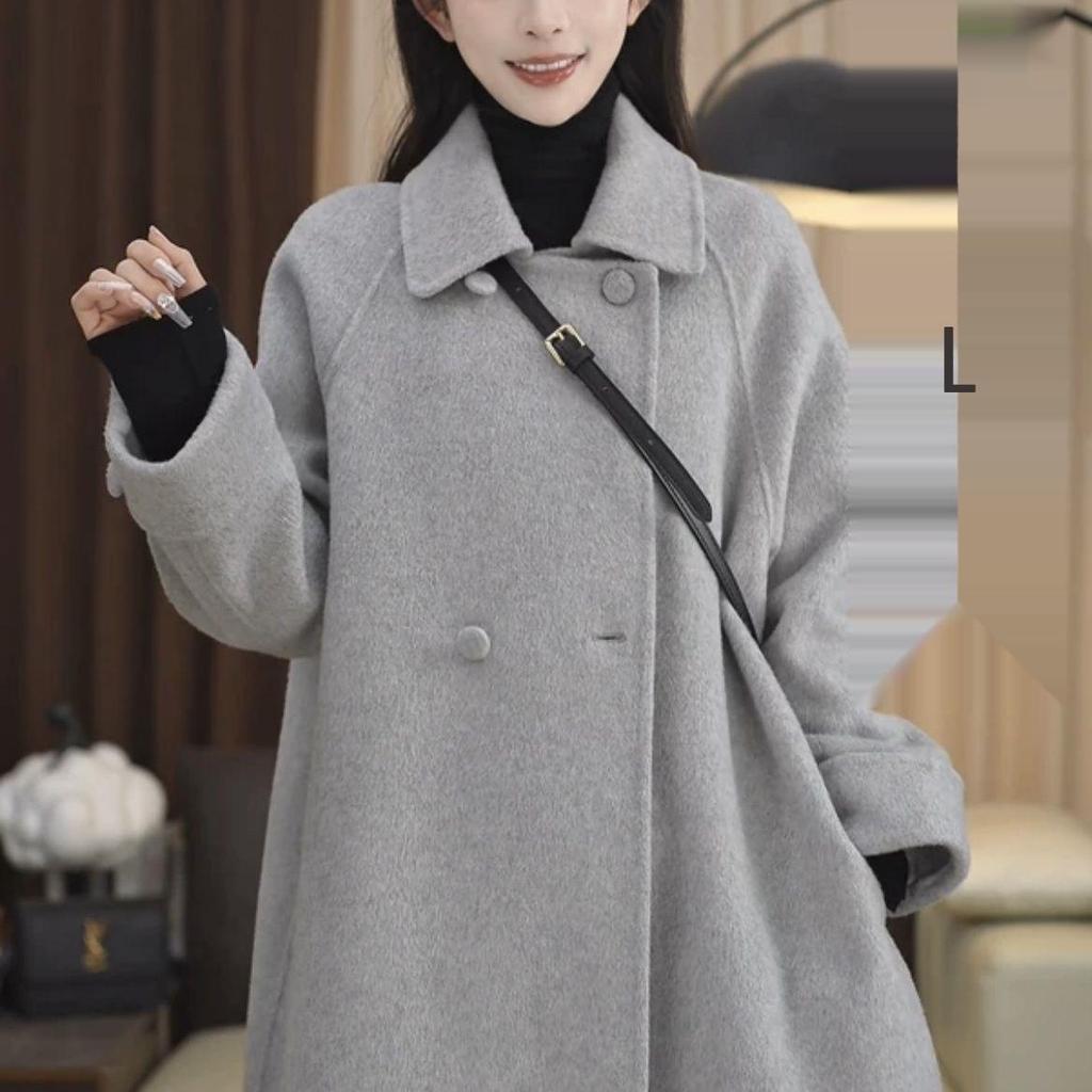 Plus Size Women's Korean Style Slimming Mid-Length Woolen Coat for Autumn/Winter - Loose Fit, Petite Long Jacket.