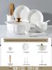Pure White Ceramic Tableware Set: Dinner Bowls, Rice Bowls, Plates, Dishes, and Double-Ear Soup Bowls for Home Use.