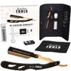 Kit de rasage - Rasoir de barbier - Lames interchangeables - Stick d'alun - Serviette - Peigne pochoir