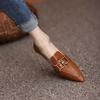 Small brown leather shoes women's single shoes pointed British style retro belt buckle loafers spring and autumn middle heel soft leather one pedal
