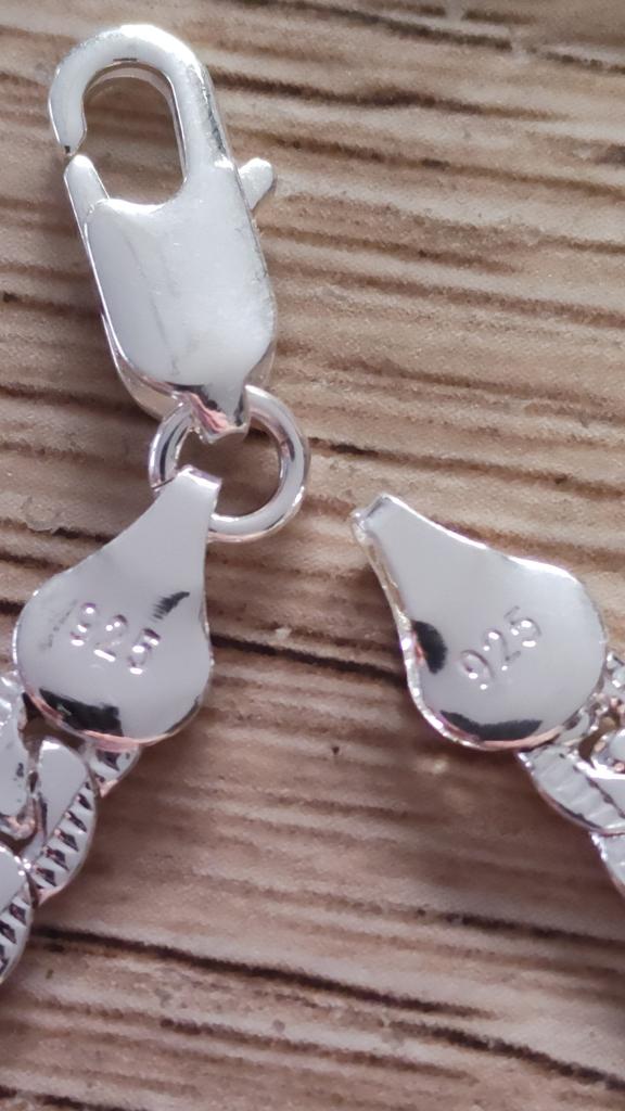 Très beau bracelet. Il est bien marqué 925 en espérant que c'est bien le nombre de grammes d'argent du bracelet. Il mesure 20 cm. Reste avec le temps qu'il ne va s'oxyder.