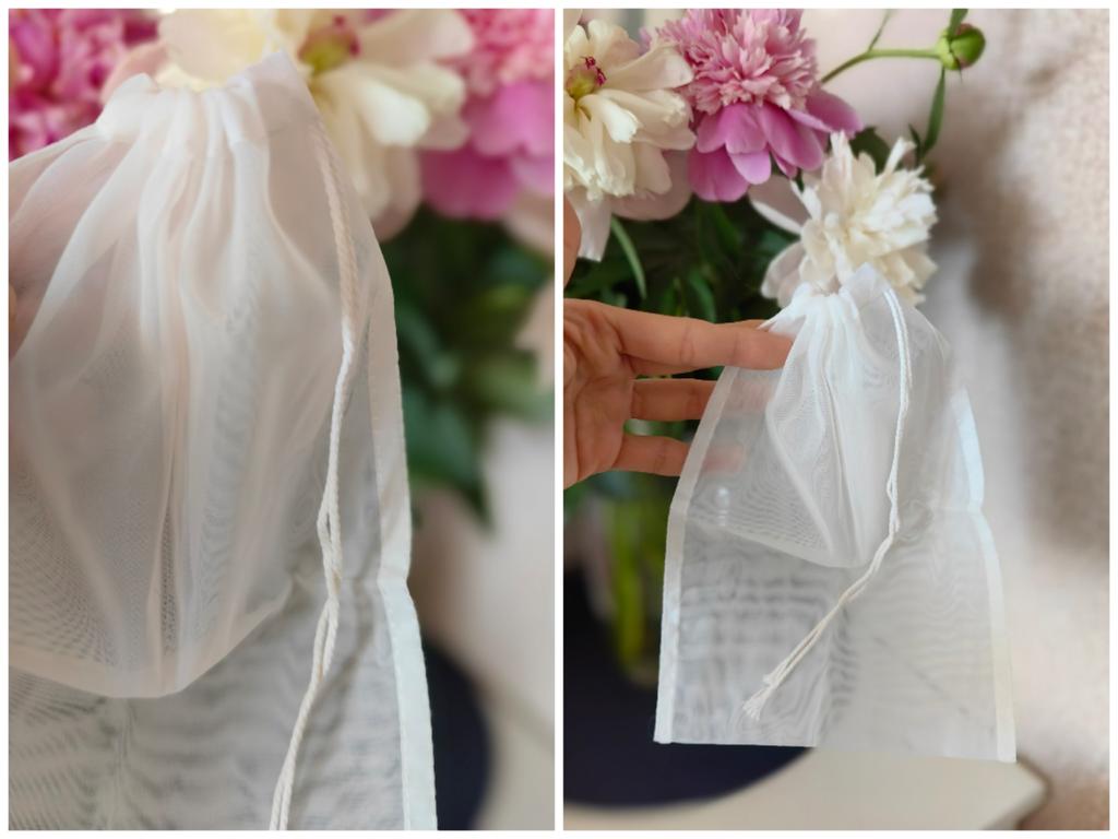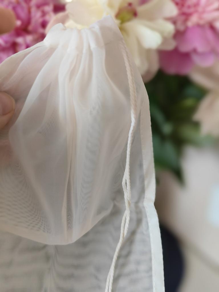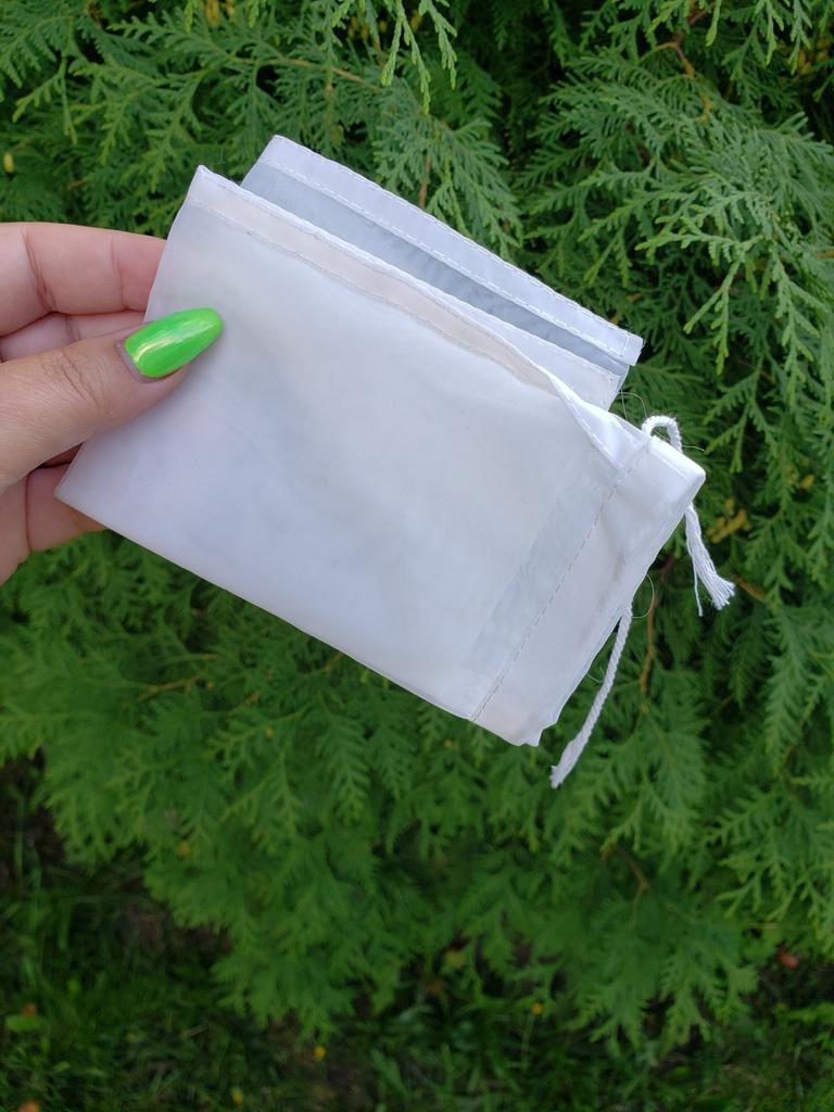 Filtre en nylon - sac pour égoutter les aliments. Utile pour toute femme au foyer dans la cuisine! Bien plus pratique qu'une gaze, elle est en nylon, de dimension 15*20 cm, serrée avec un cordon en nylon.