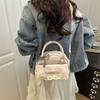 Lace edge portable small square bag women's new trendy fashion simple versatile shoulder bag commuter messenger bag