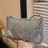 - **Structured Multi-Way Bag Details**: Features a stylish structured腋下 bag silhouette with PU material, denim-like pattern, metallic chain detail, and cute charm accessory, along with versatile carrying options (handheld, single-shoulder, crossbody with adjustable strap 100-120cm), exuding edgy and playful charm. Multiple color options (Pink, Silver) cater to diverse style preferences.