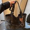 Vintage commuter leopard print bag belt decoration new tote bag large capacity niche locomotive Spice girl portable shoulder bag