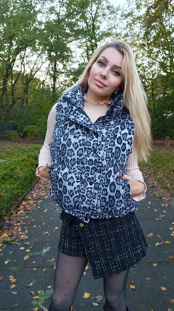 Sleeveless vest in leopard print 🔆Delivery time 🔆: 17 days to Germany. 🔆Scope of delivery 🔆: Included in the scope of delivery is a vest🦺in the corresponding color and size. The product is available in 4 colors. It is available in sizes from M to 2XL. I ordered it in size M in gray and the top 🦺 is perfect for me. My measurements are 90-65-90cm . I weigh 55kg distributed over 167cm. 🔆Quality 🔆: The vest has excellent quality!🔝🔝🔝🔝🔝🔝I especially liked the design, namely this pattern print. 🔆✳️About material composition ✳️: Polyester. 🌼Summary:🌼This is a beautiful vest that has excellent quality 👍👍🔝 Also, I got a gift, a scarf. Thank you very much for it!🙏🙏🙏😍 Thank you Joom and the seller.🙏🙏🙏🌺😘 5 stars! 🌟 I would be happy to recommend the product! 🤩