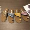 Fashion Fashion Weave Cross Tied Slippers Women Comfortable Concise Summer Open Toe Flat Slippers Casual Non Slip Vacation Beach Sandals