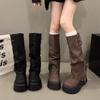 European big head zipper platform muffin Martin boots locomotive boots niche hot girl trouser tube stacking boots small women's shoes