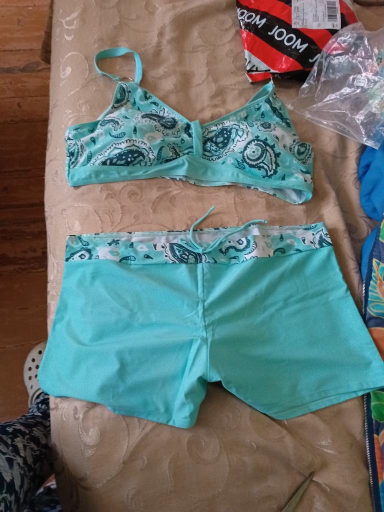 La parte inferiore del costume da bagno non ha un elastico per fissarlo in vita. La parte superiore ha un volume molto ampio sul petto e le coppe sono per... seni piatti.