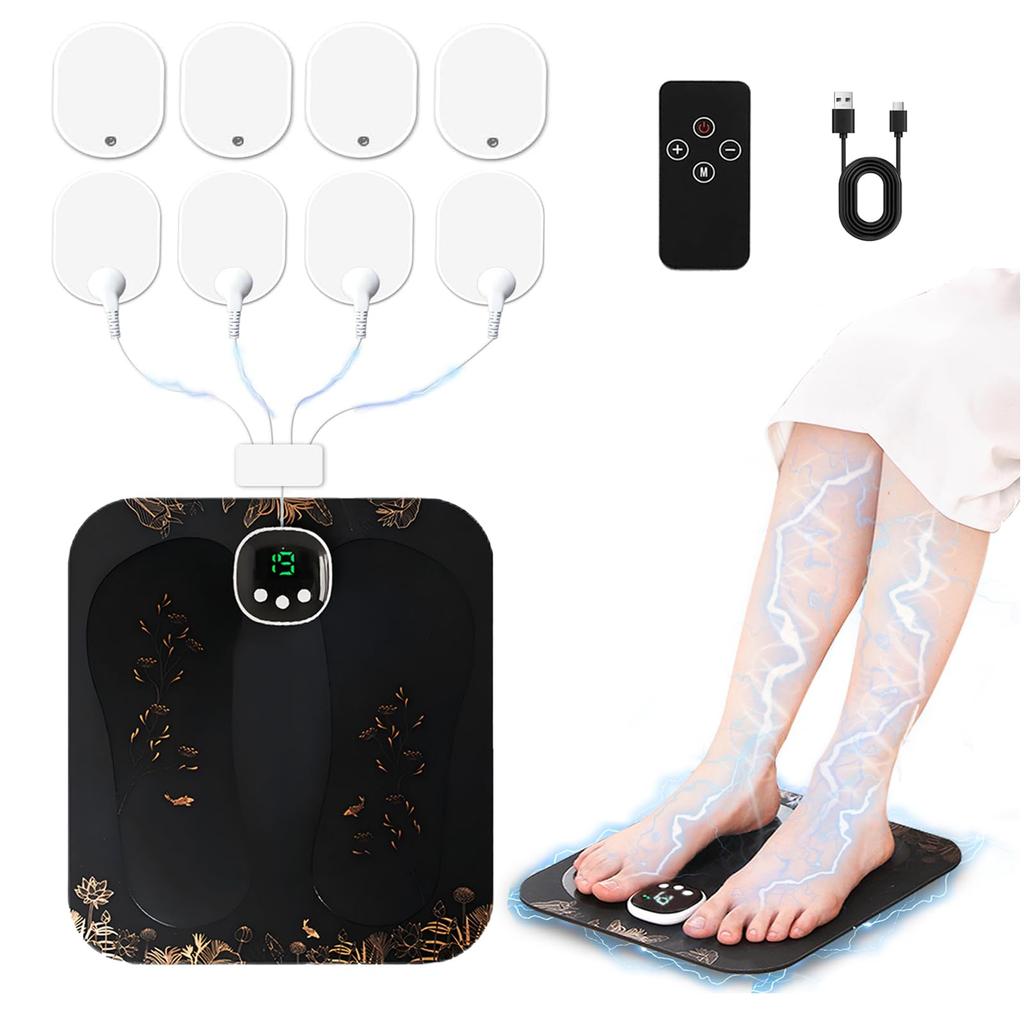 [Moderate EMS with Remote Control] 2025 New EMS Foot Care Mat. 2024 model with 200% improved specific conductivity. No water or gel required. Simply place your bare feet on it and your heels will lift, providing a moderate stimulation that feels like someone is tightly grasping your ankles. The remote control allows you to operate it while standing, without having to bend over after turning it on! Relax your feet while reading, watching TV, or using your smartphone in the living room, at your desk, or in the bedroom. *Conductivity is even better after bathing or when your skin is damp (reducing the intensity if the stimulation is too strong). *The remote control cannot be used to turn the power on/off. After turning it on, you can switch modes, adjust the intensity, and turn it off using the main unit.