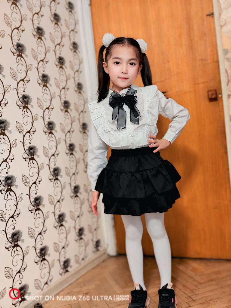გოგონების ერთიანი ტანსაცმლის პერანგი კოსტუმი საგაზაფხულო შემოდგომის გრძელმკლავიანი თეთრი პერანგი + ქვედაკაბა გამოსაშვები კლასი ერთიანი მოსამზადებელი სტილის სტუდენტისთვის