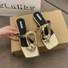 Niche metal square buckle foot slippers women's summer wear new flat-bottomed casual square toe cold slippers