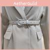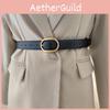 Faux Retro Trendy Leather Belt With Metal Pin Closure Bold Decorative Elements