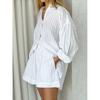 Spring Summer Solid Cotton Short Two Piece Set Women Stripe Long Sleeve Shirts Shorts 2 Piece Sets Simple Style Lady Suit