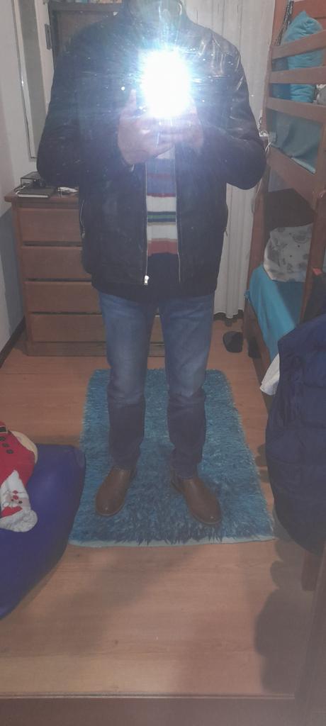 Ерлерге арналған қара және қоңыр түсті нағыз былғары куртка, тік жағалы, алдыңғы жағы сыдырмамен, кеуде қалталарымен және реттелетін манжеттермен