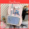 canvas tote bag, large capacity handbag, casual travel purse, girls school bag, cute bucket bag, multifunctional shoulder bag, trendy plaid tote, lightweight fabric bag