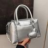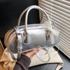 - **Structured Multi-Way Bag Details**: Features a stylish structured mini Boston bag silhouette with PU material, glossy finish, charm accessory, and versatile carrying options (handheld, single-shoulder, crossbody with adjustable strap 120cm), exuding edgy and playful charm. Multiple color options (Black, Off-White, Silver) cater to diverse style preferences.