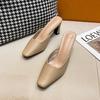 Fashion 7CM High Block Heels Mules Shoes Ladies Pointed Toe Wedges Slides Shoes Woman U Open Slingback Sandals Femmes Pantuflas Slippers