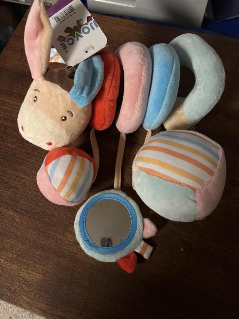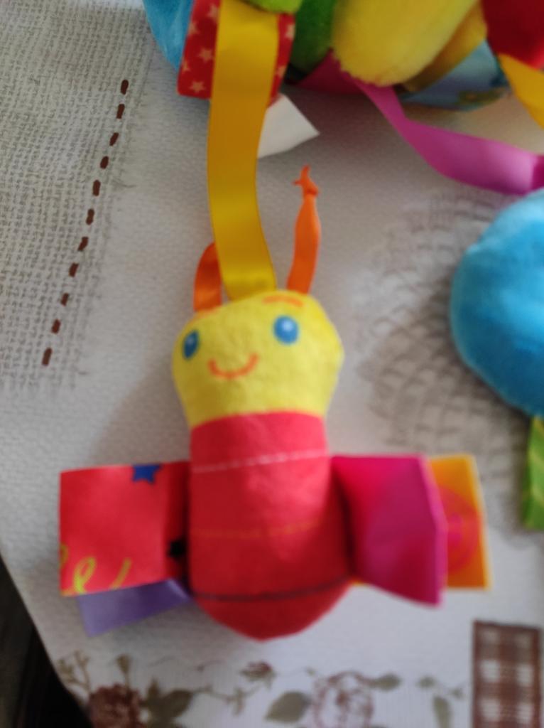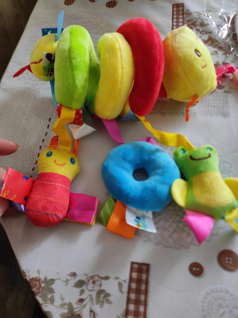 Alt som beskrevet, leken kan henges på sprinkelseng eller barnevogn. Pent, estetisk utførelse, behagelig å ta på. jeg anbefaler