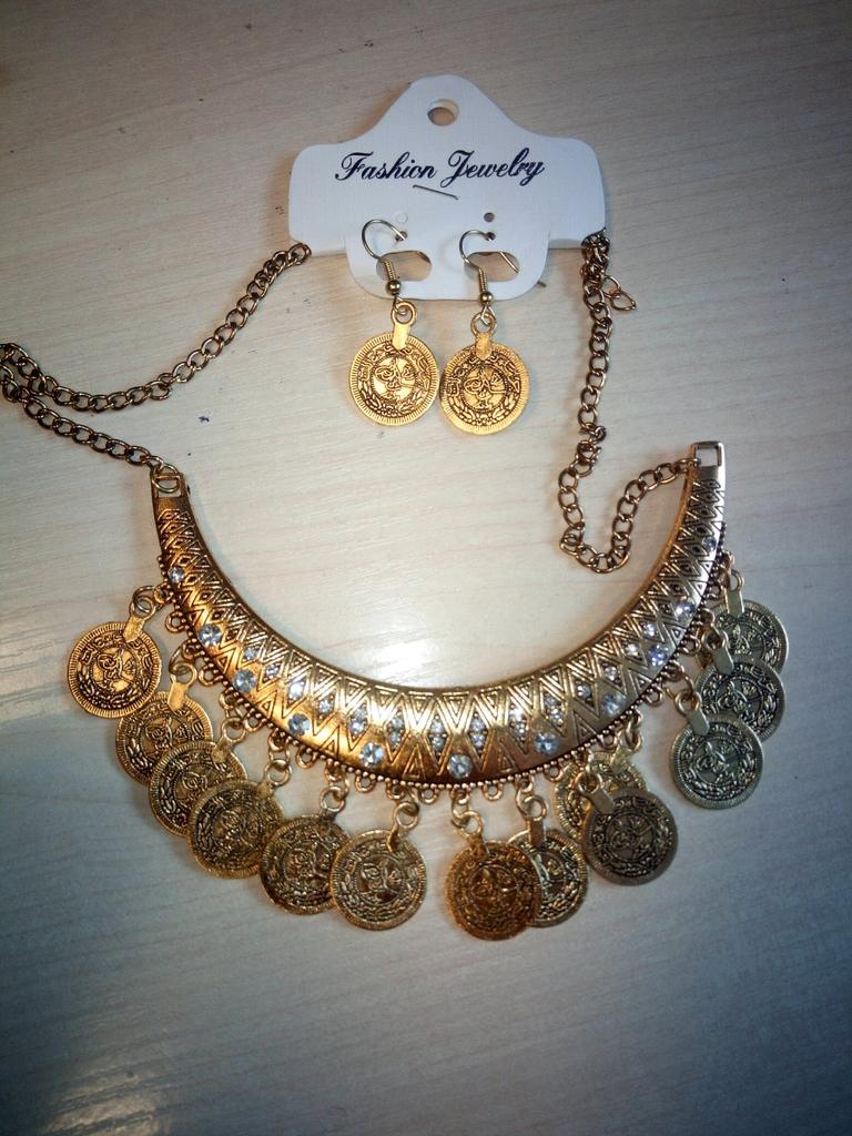 Vintage Antikk Mynterklump Statement Chokerkjede Hoop Øredobber Halskjede Sett Smykketilbehør