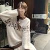 Winter Thick Warm Women Sweater Loose Vintage Rose Print Knitted Top