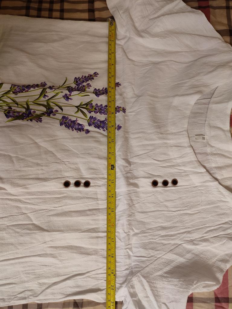 Dyre- og blomstertrykk, komfortabel t-skjorte i bomullslin, for kvinner med rund hals og korte ermer knappdekorasjon S-5XL