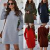 Dame høst og vinter rund hals Langermet ensfarget genser kjole