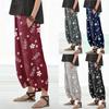 Women Cotton Linen Print Irregular Elastic Waist Casual Loose Wide Leg Pants