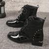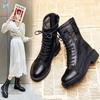 Square Front Lace Up Mesh Red Thick Middle Heel Fashion Versatile Fashion Boots