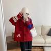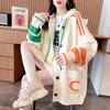 Loose Hooded Women's Long Sleeved Knitted Cardigan Letter Decoration Contrasting Color Tops Autumn Thick Female Sweaters