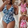 Pluss Størrelse Beskjeden Badebukse, Dame Pluss Tie Dye Kryss foran Rynket Magekontroll Ettstykke Badebukse