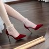 Fashion New Spring High Heels Women's Stiletto Heels Pointed-toe Buckle Pearl Metal Strap Red Sandals bridal shoes