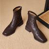 2024 Autumn and Winter Women's Boots Fashionable Pleated Square Toe Boots Women's Short Boots Western Zapatos De Mujer