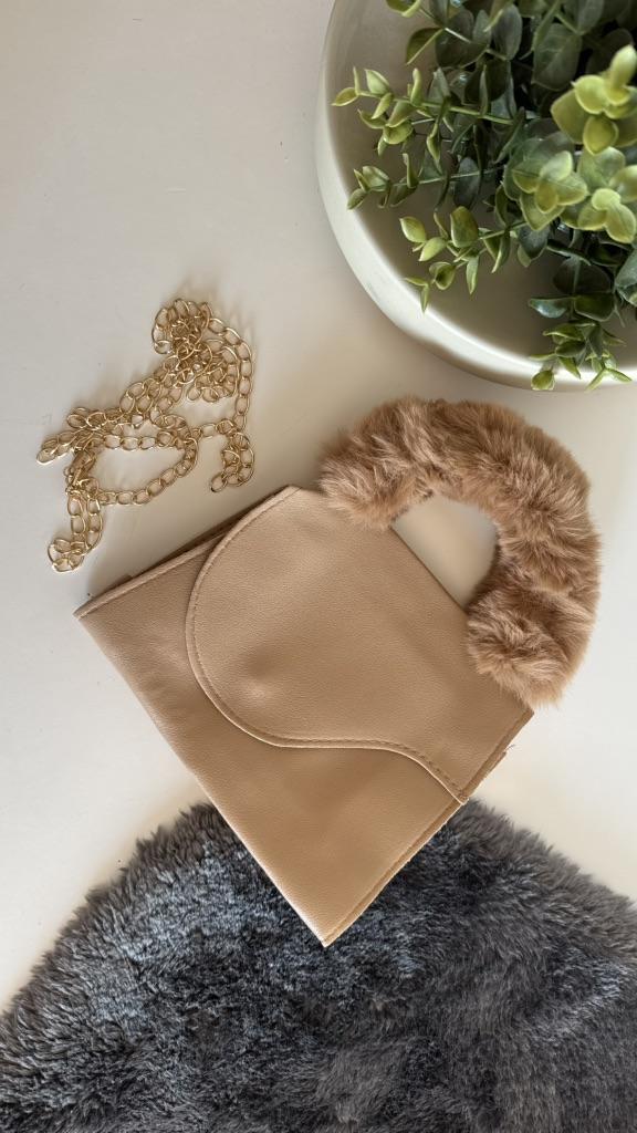Vesken er laget av PU av høy kvalitet og gir en myk og behagelig berøring.. Den er slitesterk og motstandsdyktig mot riper og mindre slitasje, noe som gjør den egnet for daglig bruk. Det fluffy håndtaket er laget av et mykt og plysjmateriale som er behagelig å holde i og holder formen godt.. Det gullfargede kjedet er laget av solid metall, motstandsdyktig mot rust og falming, og sikrer langvarig glans.