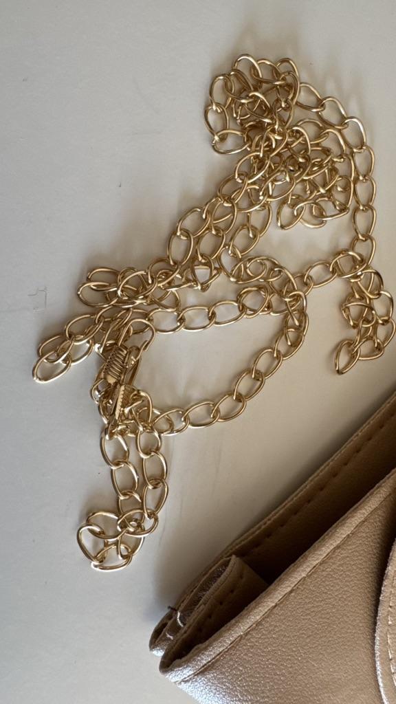 Den har et romslig hovedrom som lett kan romme daglige nødvendigheter som lommebok, mobiltelefon, kosmetikk og papirlommetørklær.. Innsiden er fôret med PU for ekstra beskyttelse av eiendelene dine. Klaffen er sikret med en magnetisk trykknapp, som gir rask og enkel tilgang samtidig som eiendelene dine holdes trygge.. Den lange gullfargede kjeden kan justeres for forskjellige bæremåter, slik at du kan bruke den som skulderveske eller crossbody.