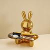 Liten Kaninstatue Dekor Smykkeskål, Søt & Retro Gullpynt Påskeharefigur for Tilbehør, Butikkutstilling, Nattbord Hjemmedekor