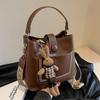 Bag women's 2025 new bucket bag brown design texture women's broadband shoulder messenger bag
