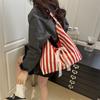 2025 new lazy wind canvas bag women's large-capacity bag Sen Meng summer striped shoulder tote bag tote bag