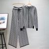 Women's Autumn/Winter Jacquard Knit Cardigan, Vest, and Wide-Leg Pants Set