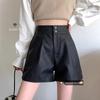 Autumn 2024 Plus Size Women's High Waist PU Leather Black Wide Leg Shorts